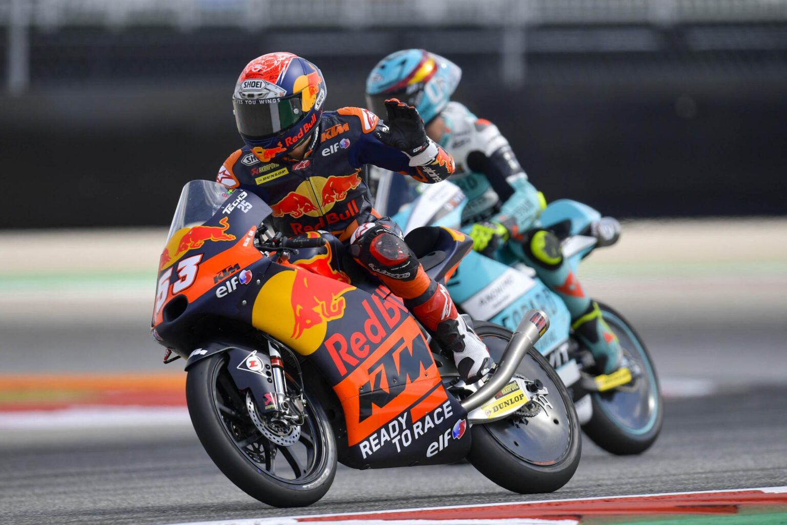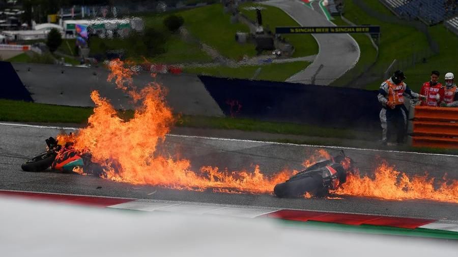 除了小型摩托赛车会发生这种悲剧,这赛季红牛环MotoGP组别的比赛中,后方车辆萨瓦多里差点就撞上了佩德罗萨。