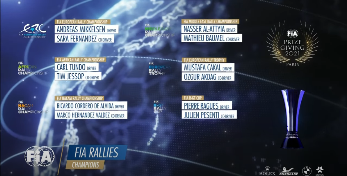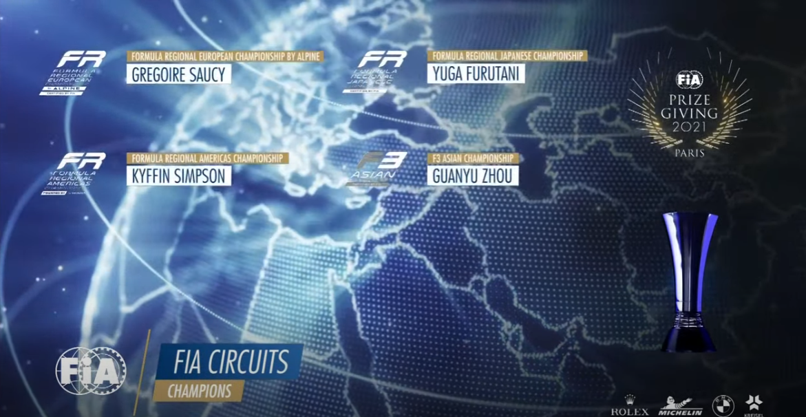 各项场地赛事总冠军(包括亚洲F3冠军中国车手周冠宇、WTCR年度总冠军杨·埃尔拉舍)