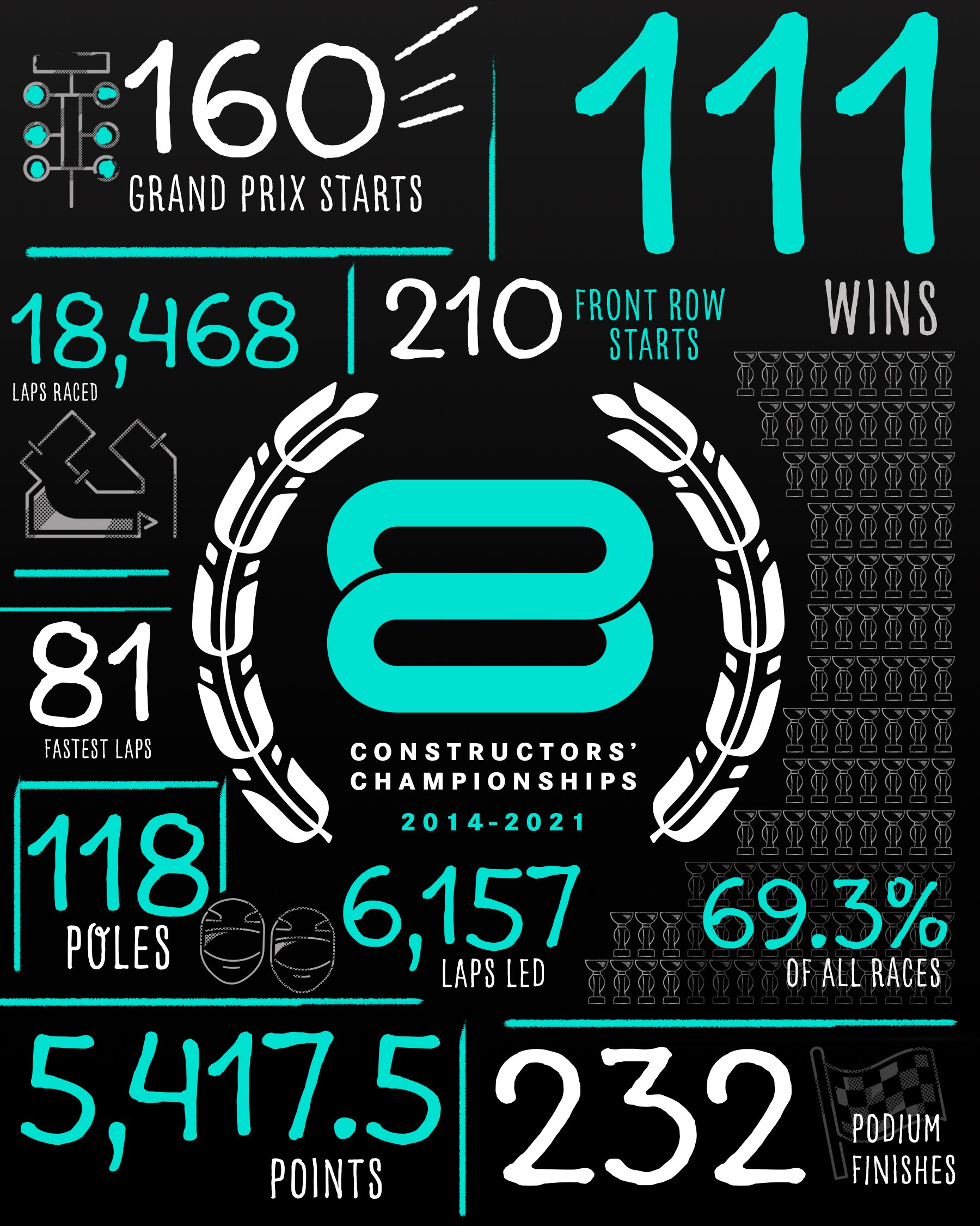 自从放弃上诉之后,梅赛德斯就开始疯狂展示八个车队世界冠军的傲人成绩。