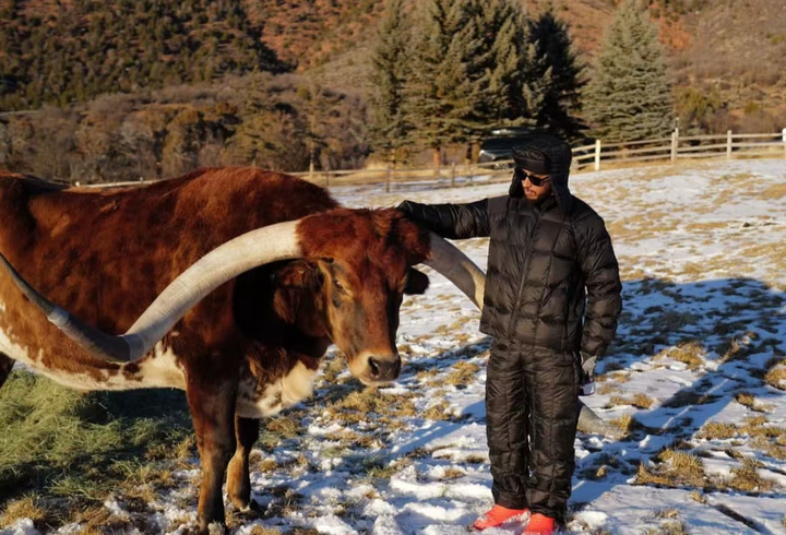 汉密尔顿更新社媒:冬日中抚摸一头公牛