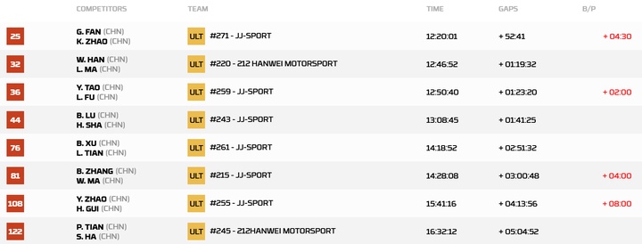 以下为第3赛段后,汽车组中国军团总成绩榜排名: