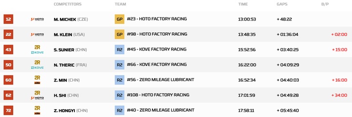 以下为第3赛段后,摩托车组中国军团总成绩榜单排名: