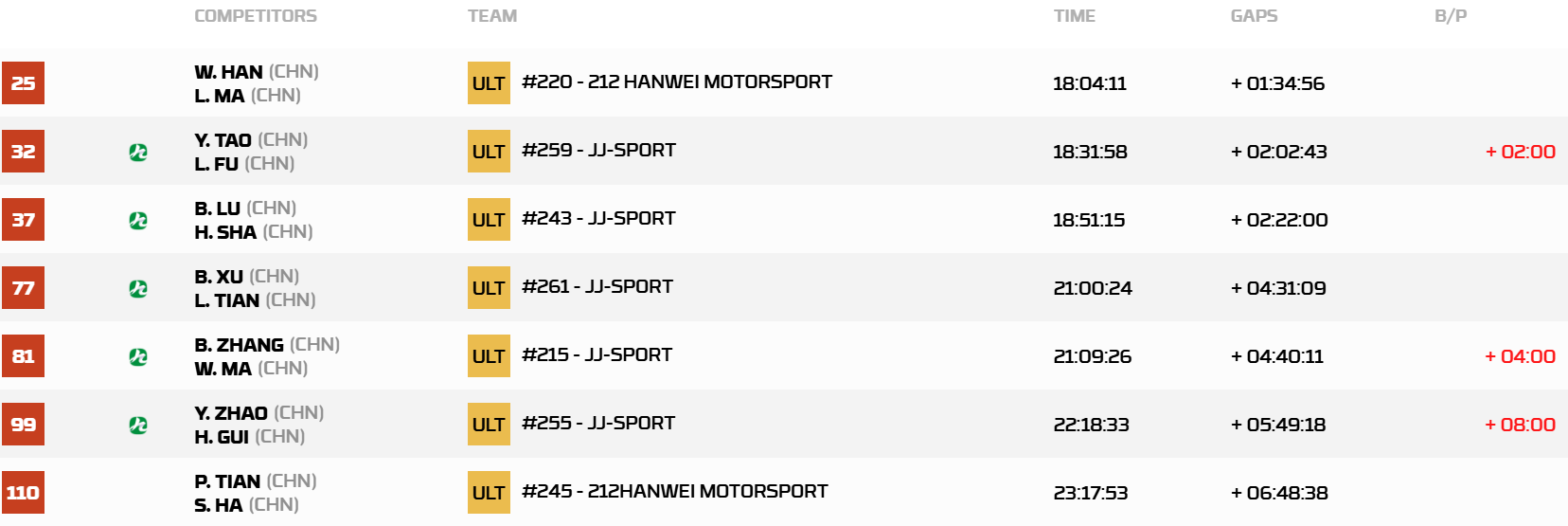 以下为第4赛段后,汽车组中国军团总成绩榜排名: