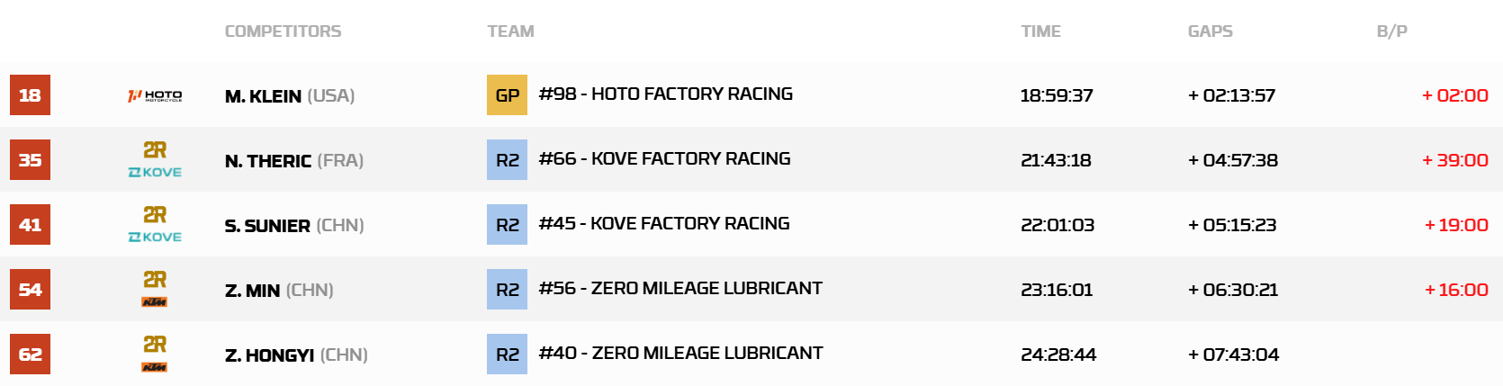 零公里车队的两位车手张敏和赵宏義分列第52和58名。