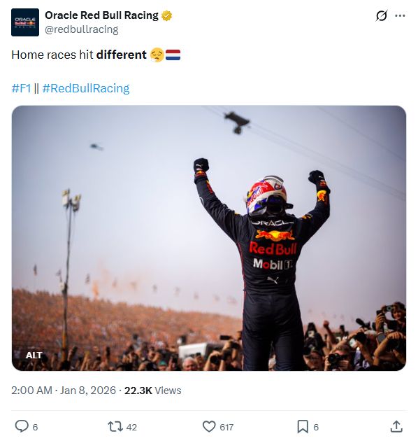 红牛:维斯塔潘在主场比赛的感觉就是不一样