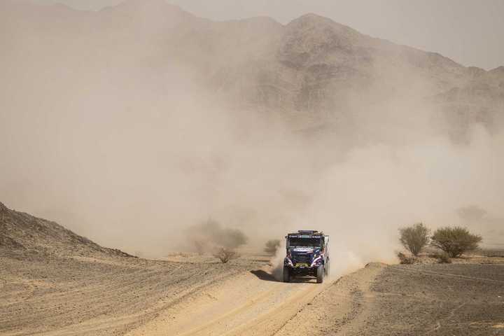 立陶宛车手扎拉取得了卡车组别的赛段胜利,成为达喀尔历史上第一位能够取得汽车组和卡车组赛段胜利的车手!洛普莱斯和马奇克分列二三。米切尔·范登布林克今天损失超过10分钟之后,总成绩榜上领先马奇克的差距被缩小到了27分05秒。