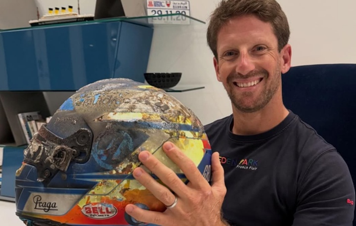 近日,前哈斯F1车手格罗斯让在社交媒体发文,他写道:“在2020年11月29日之后的五年,我再次见到了这顶比赛头盔。”