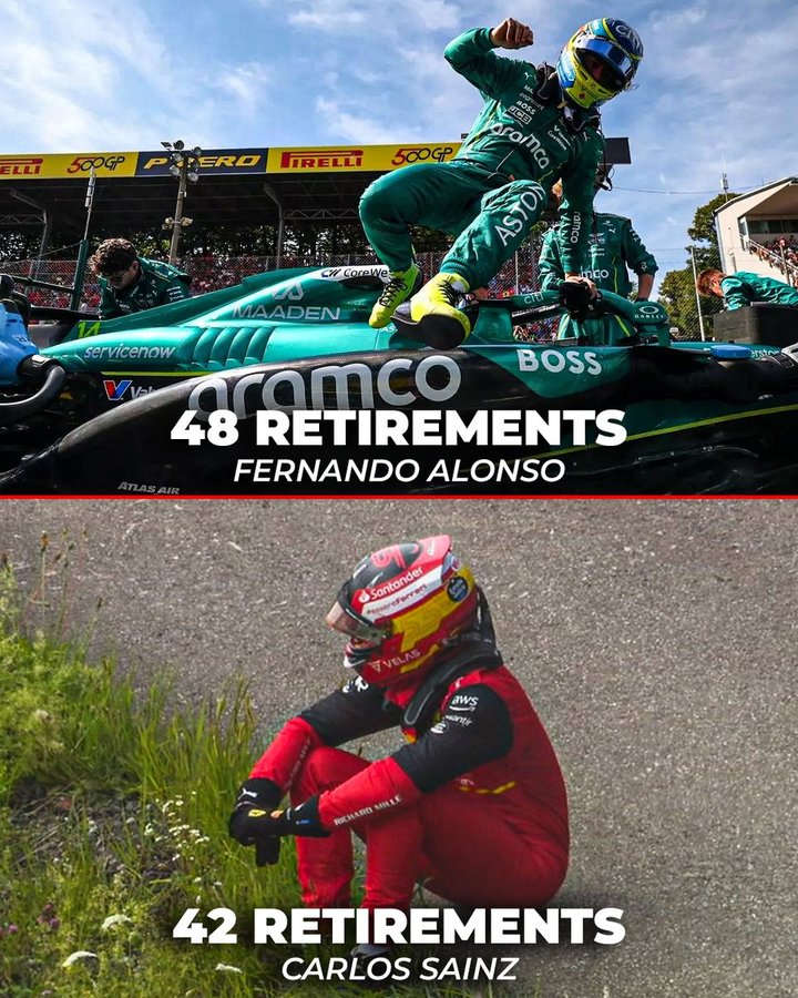 在2014-2025赛季期间,阿隆索与塞恩斯成为了退赛次数最多的两位车手:阿隆索共计退赛48次,塞恩斯退赛42次。