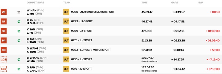 以下为第10赛段后,汽车组中国军团总成绩榜排名: