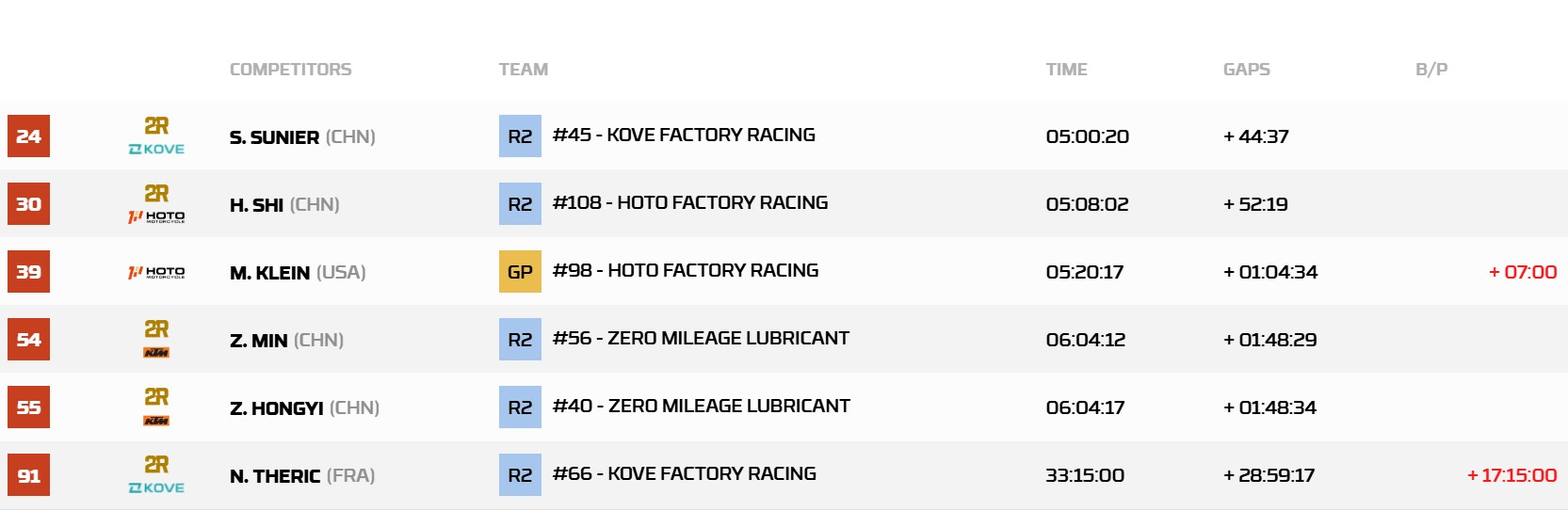 零公里车队的张敏和赵宏義分列第54和55名。