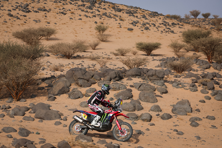 昨天摔车受伤的桑德斯今天落后10分28秒取得赛段第13名,他将带伤坚持完成今年的达喀尔拉力赛。