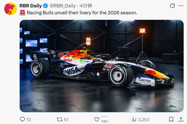 红牛二队赛车涂装同样被流出,主色调为白色搭配深蓝色