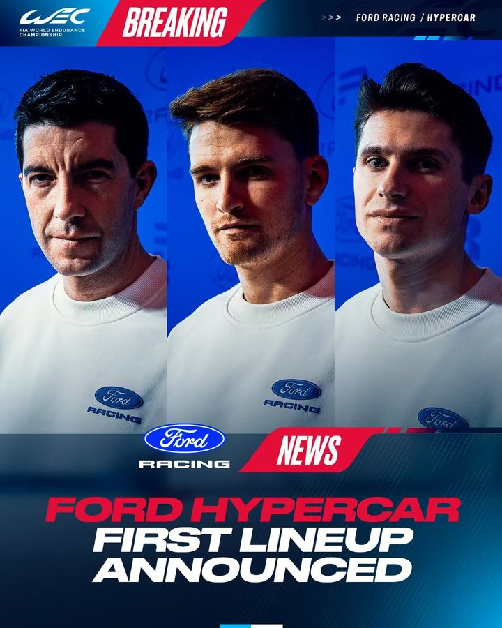 福特官方公布了代表其参与2027赛季WEC最高组别赛事的首批正式车手,前F1车手萨金特位列其中。