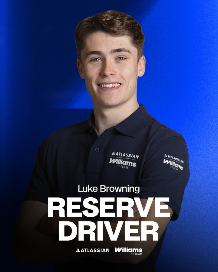 威廉姆斯车队官方宣布,英国新秀卢克·布朗宁将在2026赛季担任车队储备车手,同时他还会代表Kondo Racing参加日本超级方程式比赛。