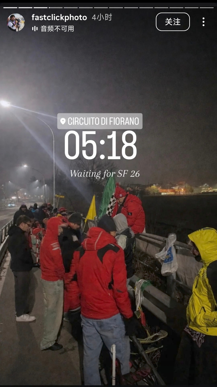 当地时间凌晨时分,法拉利车迷已经聚集在菲奥拉诺赛道旁,希望一睹法拉利2026年新车SF-26的风采