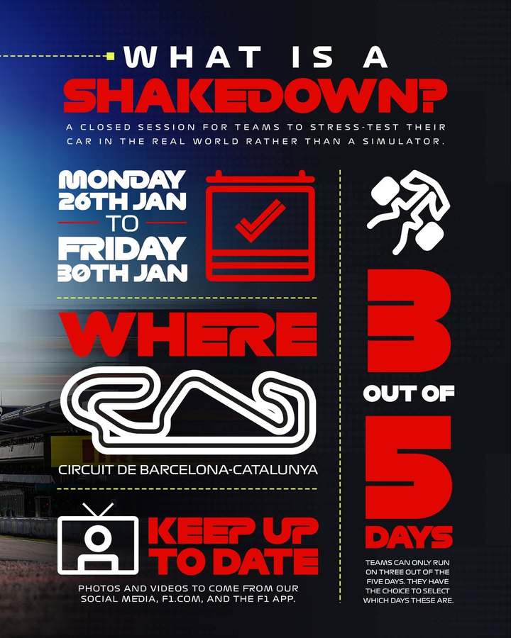 F1试航周是指:各支车队在2026季前测试前,在真实赛道开展的封闭测试。