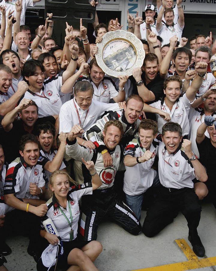 配图为巴顿在2006年匈牙利站帮助本田车队拿下分站冠军的画面。