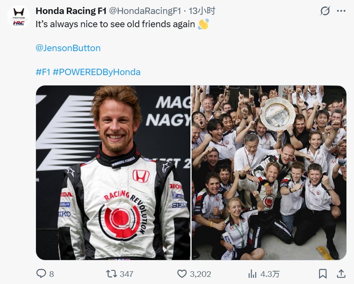 本田社媒:再次见到老朋友巴顿,总是令人高兴