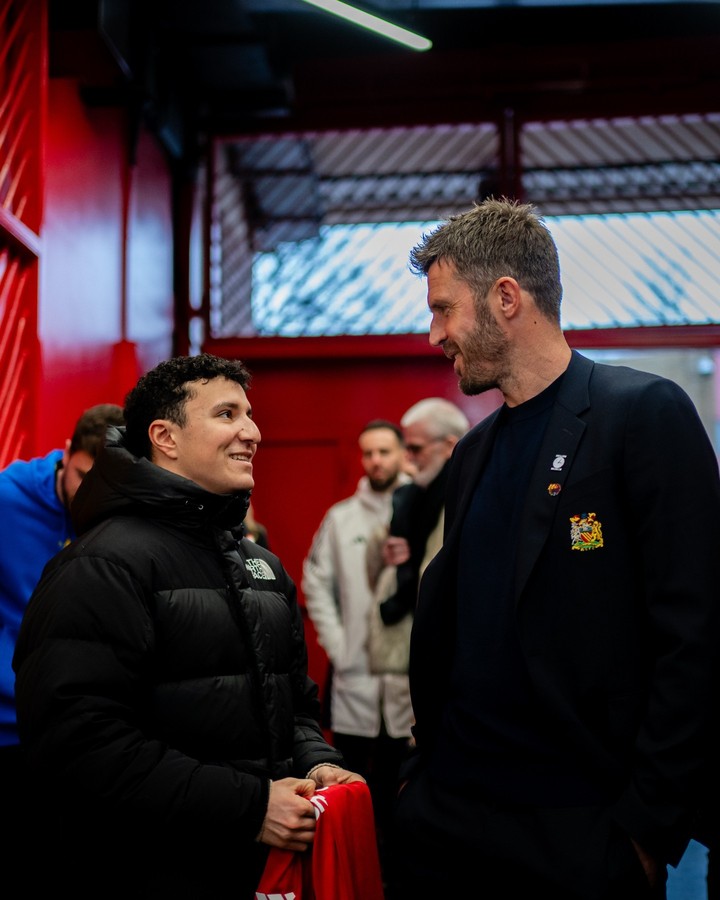 红牛车手哈贾尔在北京时间昨天来到了老特拉福德球场观战了曼联对阵热刺的英超赛事。曼联俱乐部官方社媒也发文欢迎了哈贾尔的到来。