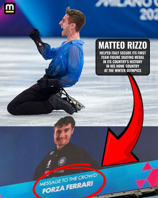 Tifosi无处不在,意大利花滑运动员打出标语Forza Ferrari