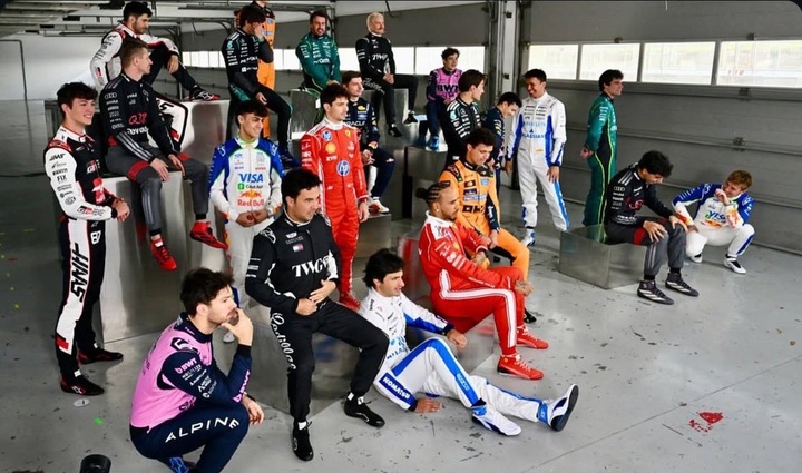 维斯塔潘和诺里斯C位!22名车手拍摄新赛季大合影