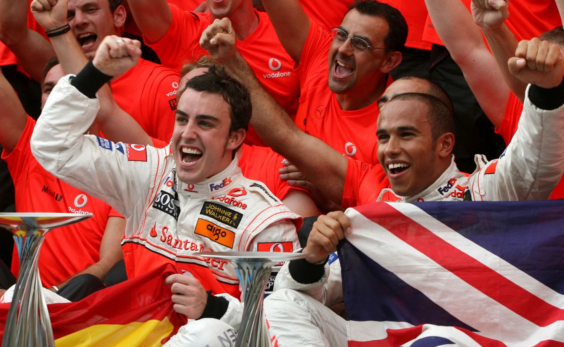 2007年,阿隆索带着两届世界冠军的荣耀加盟迈凯伦,而汉密尔顿作为被老板罗恩·丹尼斯看着长大的未来之星,在拿下GP2冠军后升入F1。两人当时悬殊的履历差异,也是这段队友关系注定不欢而散的根源。