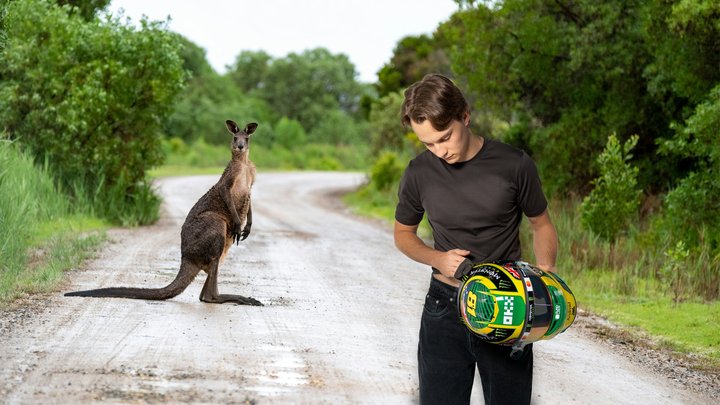皮亚斯特里在社交媒体上展示自己的揭幕战特别版头盔,并配文:“这就是你在之前一条推文中已经见过的头盔,拍摄地点肯定是在澳大利亚。”