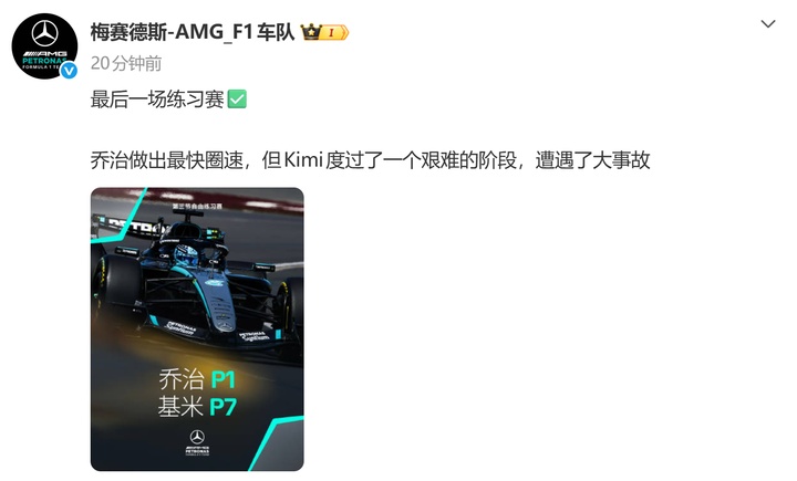 梅奔:最后一场练习赛✅拉塞尔做出最快圈速