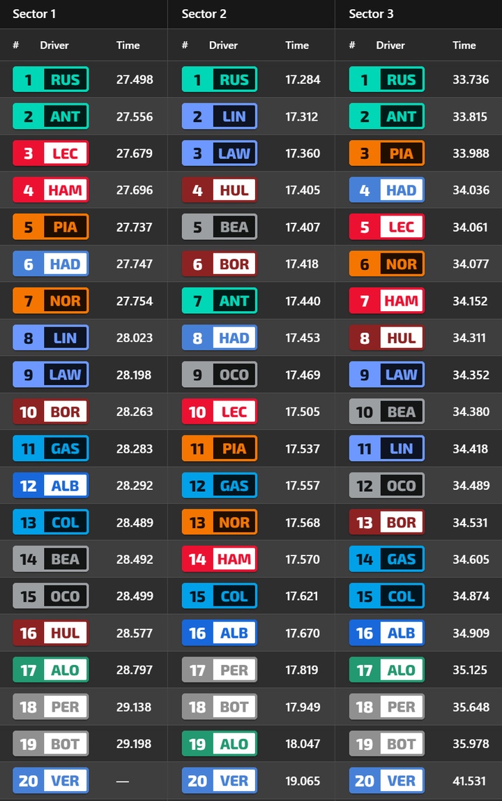 排位赛分段计时榜:梅赛德斯统治级表现