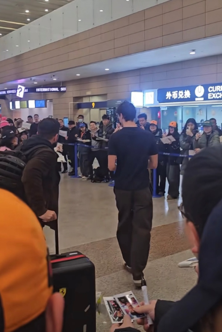 哈斯车手贝尔曼于3月11日早上抵达上海浦东机场,尽管夜航飞行略显疲惫,但仍在迎接大厅积极为车迷们签名。