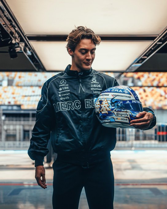 拉塞尔:新的中国站头盔!!很开心来到这样一个美丽的国家。今年的头盔灵感来源于当地的风景和中国瓷器,这一点从蓝白细节的对比中可以看出。感谢这里所有的支持,希望你们喜欢这个头盔。