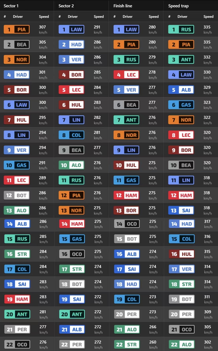 一练分段速度榜:拉塞尔、皮亚斯特里尾速领跑