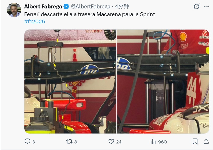 名记:法拉利撤下翻转尾翼,转而用常规尾翼进行冲刺排位赛