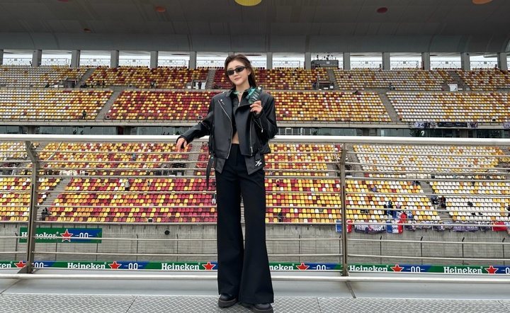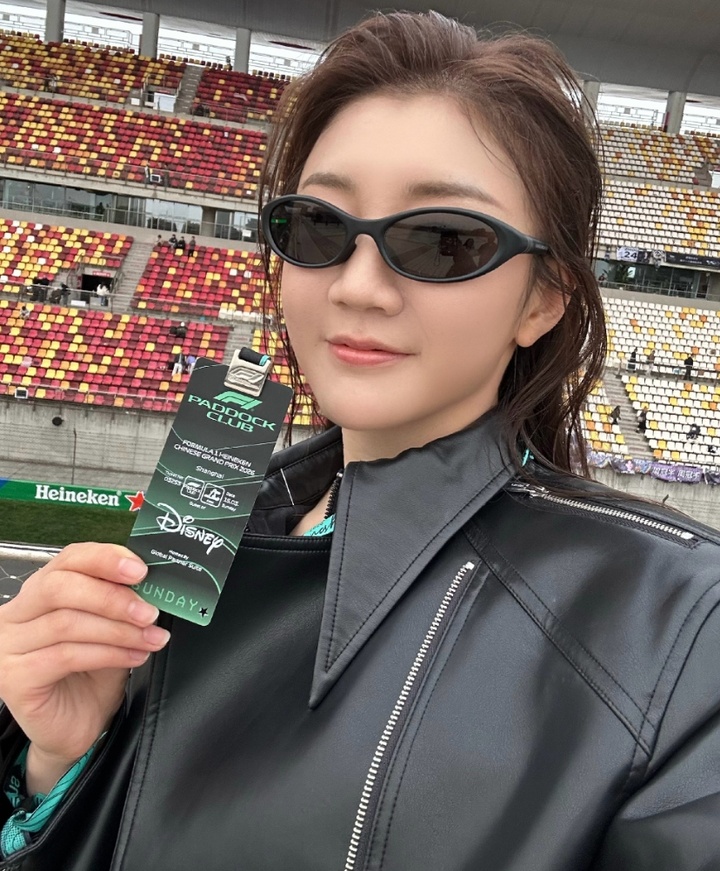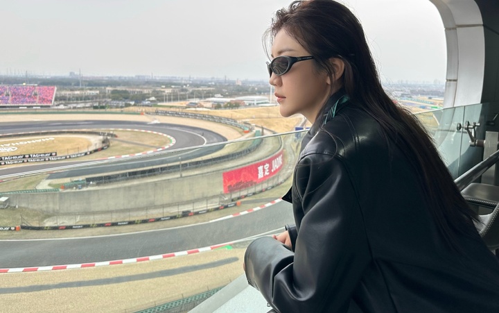奥运会冠军陈梦在微博中晒出自己观看F1中国站的照片,并配文: