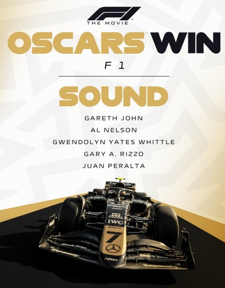 2026年第98届奥斯卡金像奖颁奖典礼今日举行,《F1:狂飙飞车》荣获最佳音效奖。