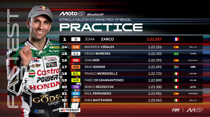 MotoGP时隔22年重返巴西,所有车手在北京时间今天凌晨于戈亚尼亚-埃尔顿·塞纳赛道进行了周五赛事的争夺。