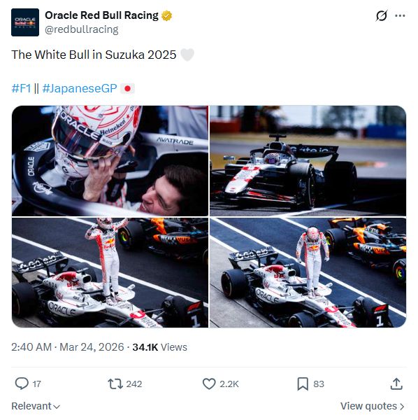 2025年日本大奖赛,红牛为本站比赛带来了白色款的赛车特别涂装。