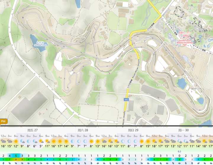 而根据知名气象预报网站Windy的数据预测,日本站三天的比赛均为晴朗天气,不会出现降水。