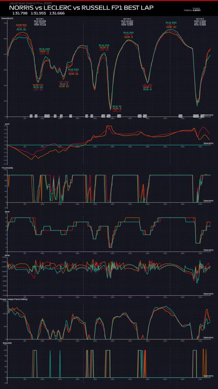 而且梅赛德斯赛车的高速弯表现不错,他们依靠S1的弯中表现已经反超了对手在主直道上放电获得的优势。并且在S2巩固了自己的领先优势。
