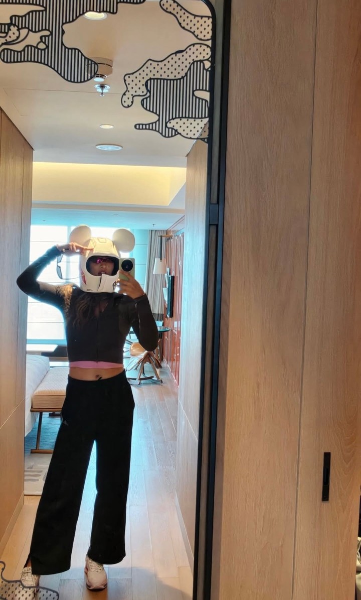 郑钦文戴上了勒克莱尔同款的F1 x 迪士尼联名款头盔
