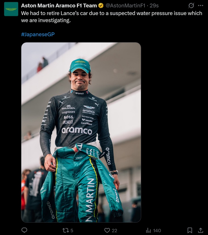 斯托尔成为2026年日本大奖赛第二位退赛的车手。