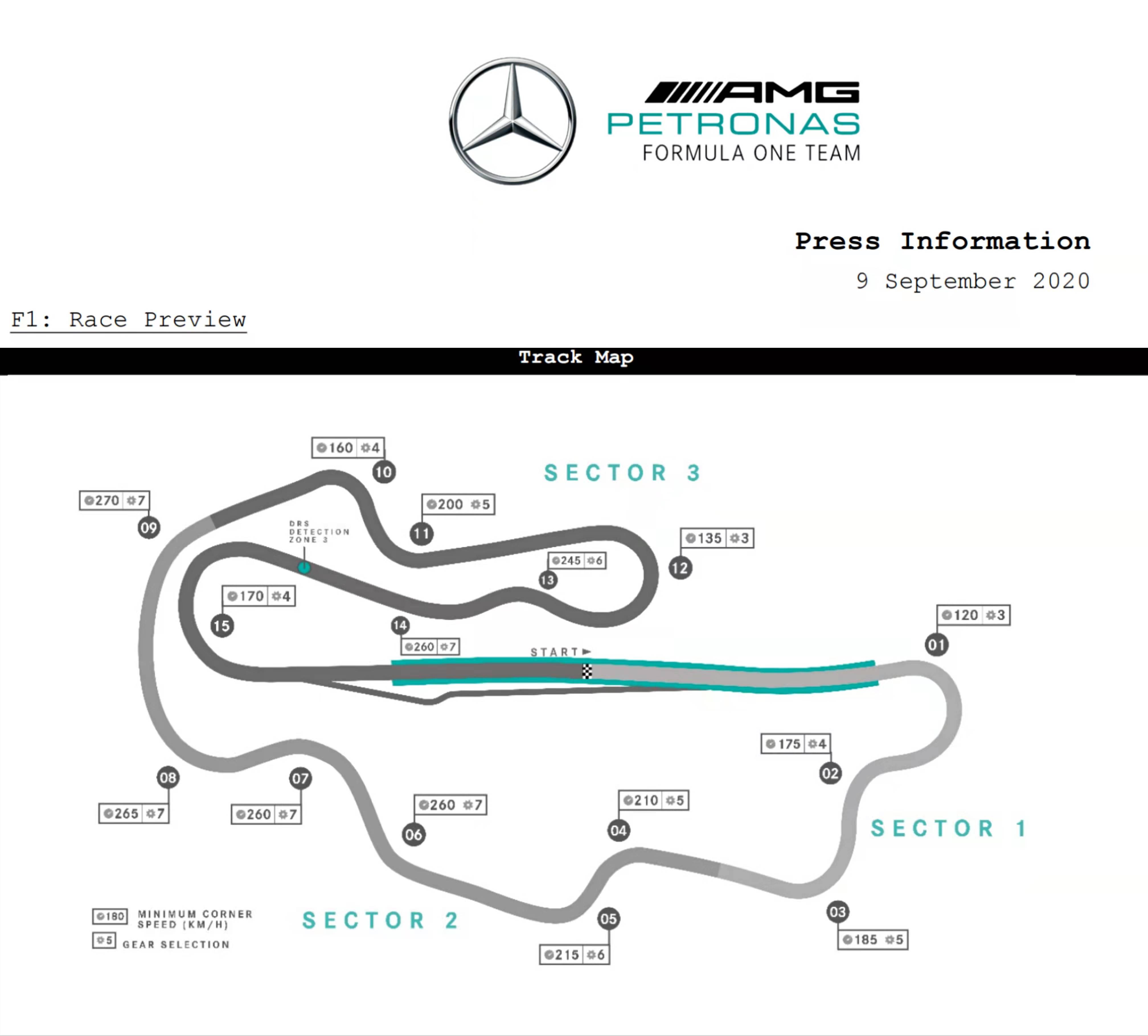 根据梅赛德斯车队2020年给出的穆杰罗赛道数据,穆杰罗拥有着众多高速弯。