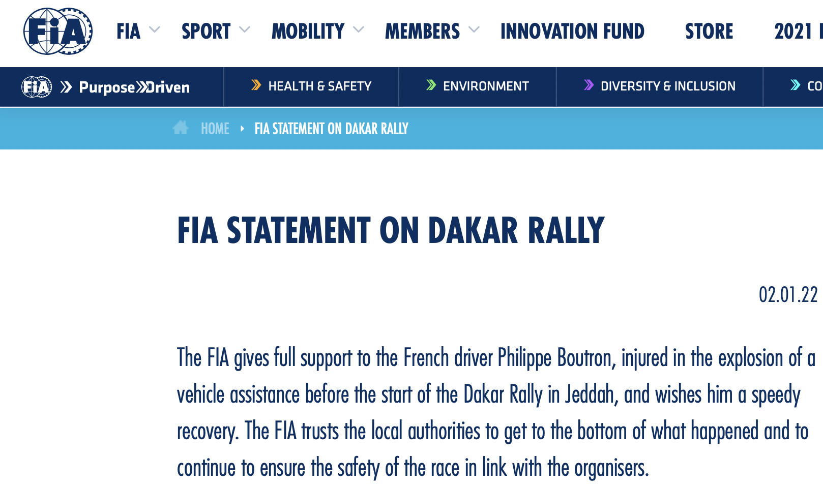 为此,FIA发布声明,对受伤车手表示慰问,并祝愿他早日康复。同时,声明中也强调,国际汽联相信主办方能查明事情真相,并且依然信任其有能力维护比赛的安全。