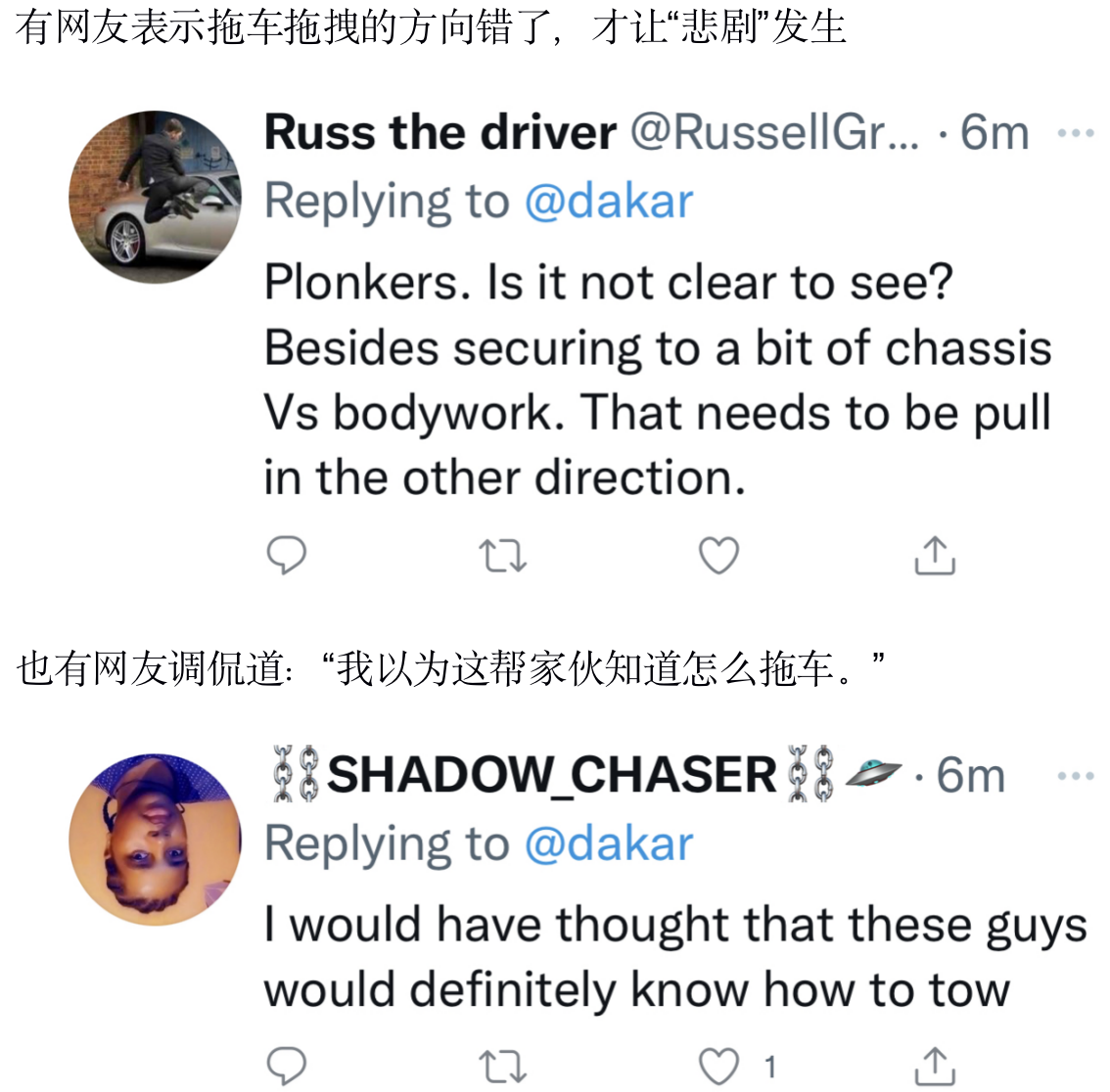 今日比赛中,一辆赛车在行驶途中翻车,在拖车拖拽过程中,竟然不小心将赛车进气格栅直接拽掉。