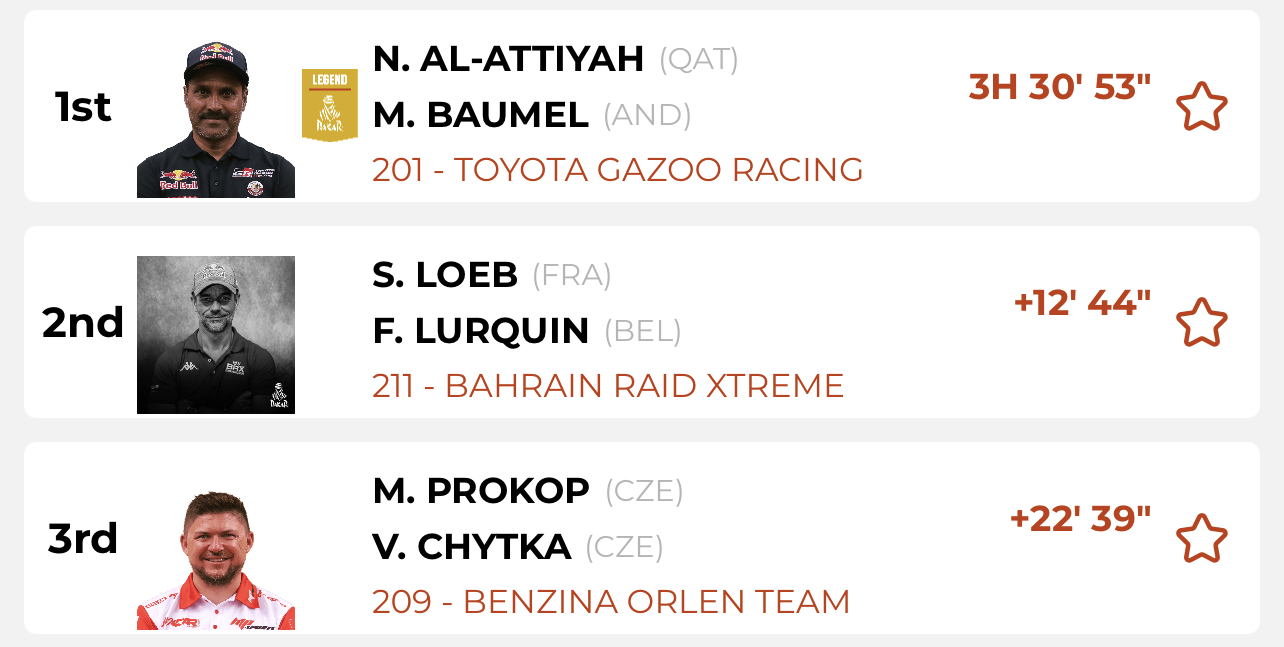 达喀尔拉力赛于当地时间1月2日进行1B赛段的较量,汽车组来自丰田车队的阿尔阿提亚以3小时30分53秒完赛,排在汽车榜首位,勒布落后12分44秒排名第二,来自