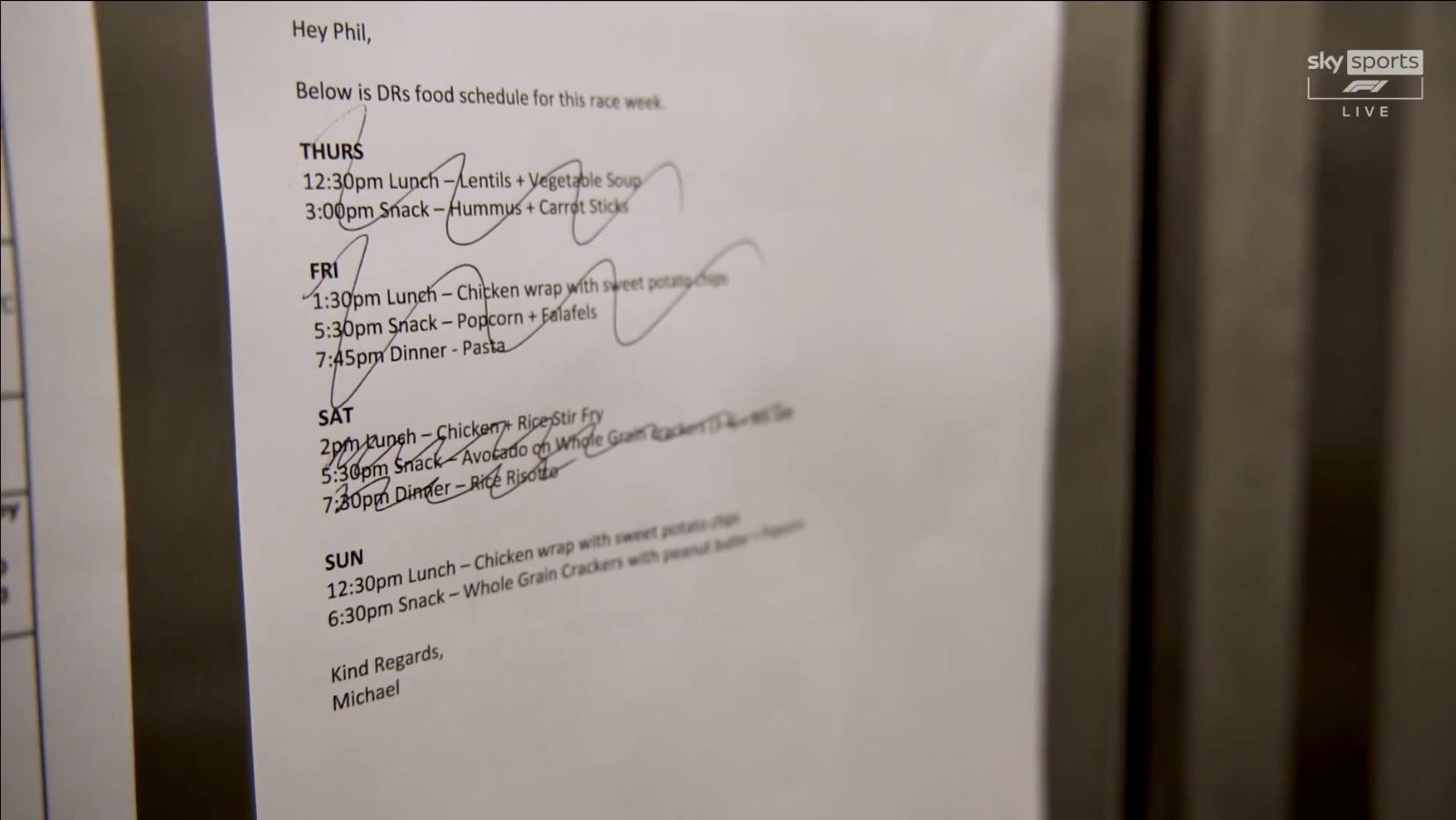 Reddit网友翻出了去年阿塞拜疆站迈凯伦给里卡多的食谱。