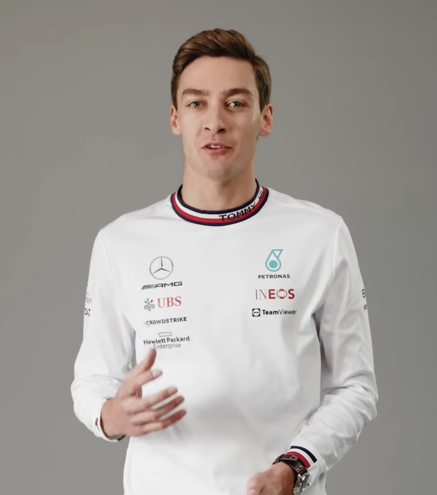 有传言说梅赛德斯的两个多年赞助商——BOSE和EPSON,将在2022年与车队停止合作。虽然此消息还未官宣,但有网友发现,拉塞尔新年祝贺视频中所穿的梅赛德斯队服果然没有这两个赞助商的标识,同时,左边袖子上还多了纪念倍耐力150周年的标志。