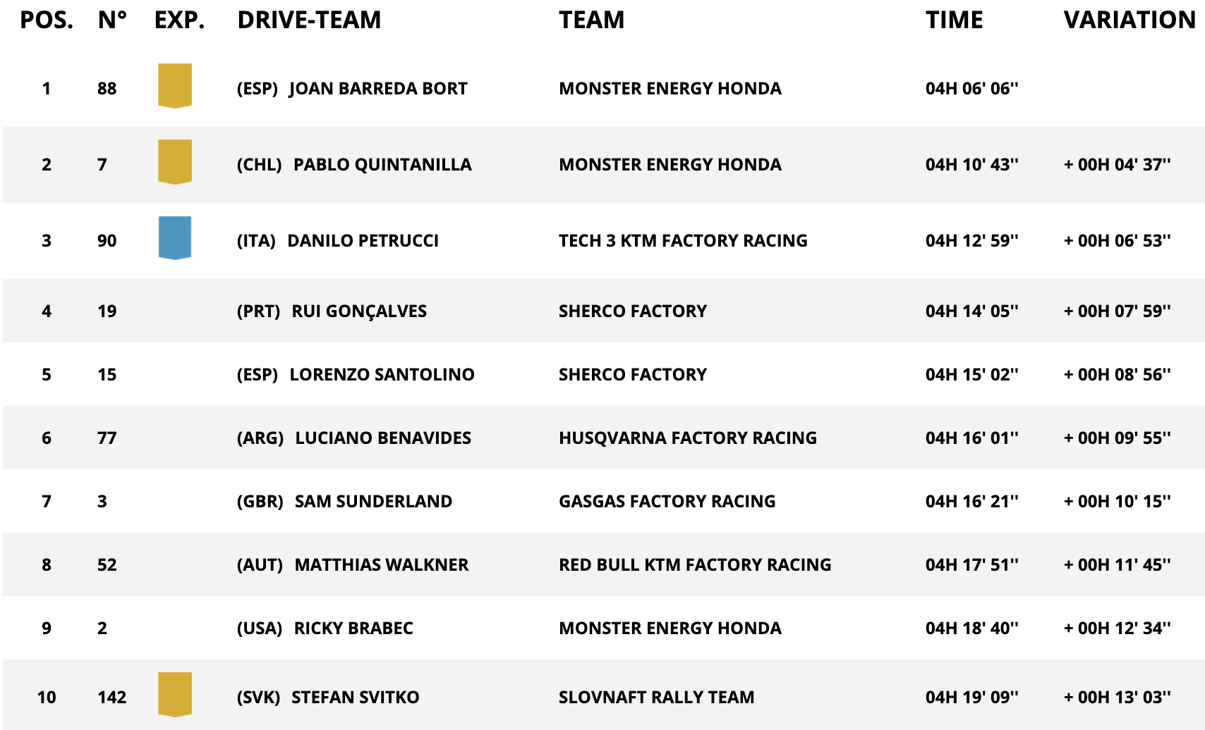 刚刚,达喀尔拉力赛第四赛段摩托车组比赛落下帷幕。本田的布雷达夺取赛段第一,胡斯瓦纳车手金塔尼亚和KTM的佩特鲁奇分列二三。