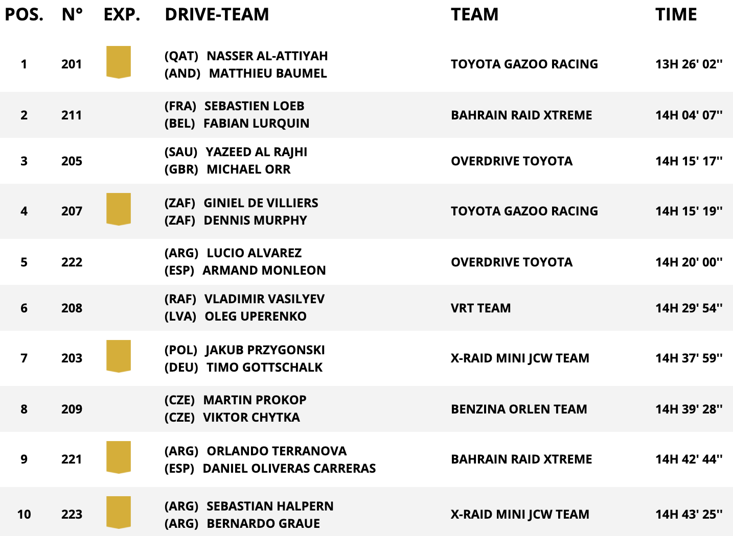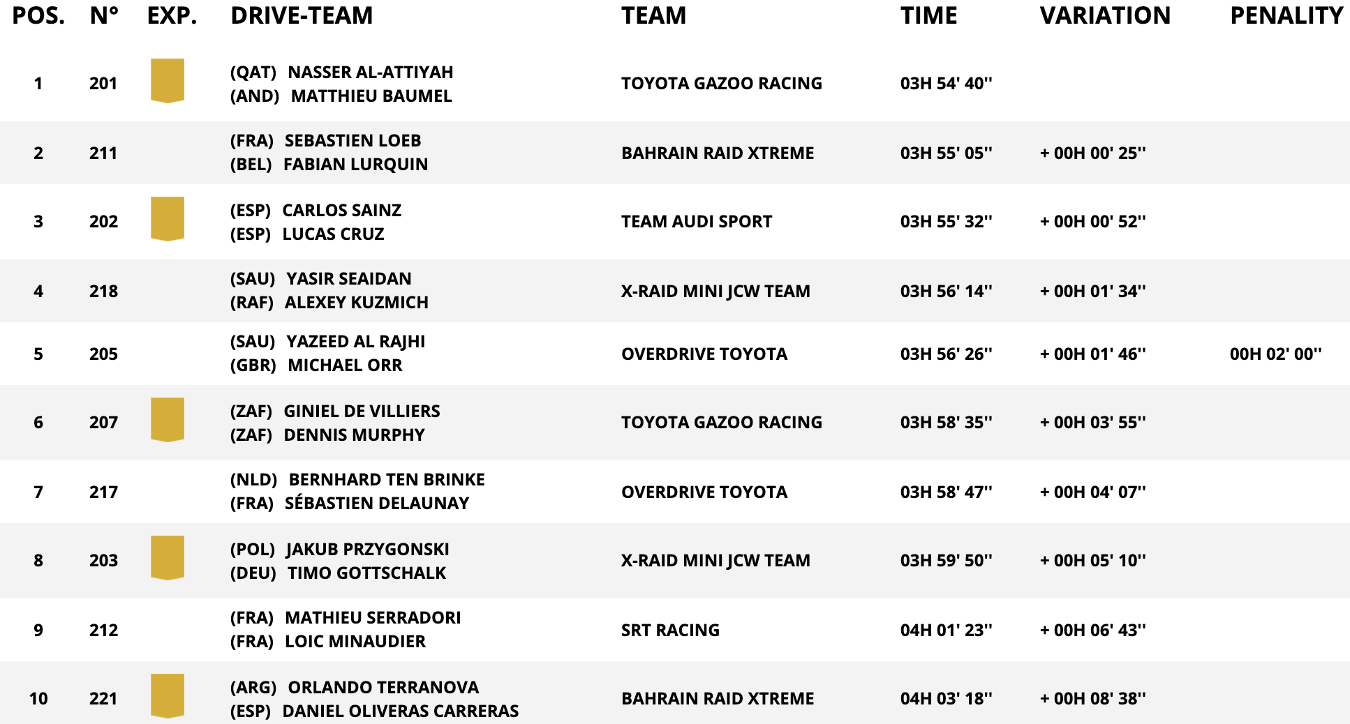 今天结束的达喀尔拉力赛第四赛段汽车组比赛中,阿尔阿提亚取得赛段第一,勒布和老塞恩斯分列二三。本来的领跑者阿尔拉吉接受了两分钟罚时,将第一名送给了阿尔阿提亚。