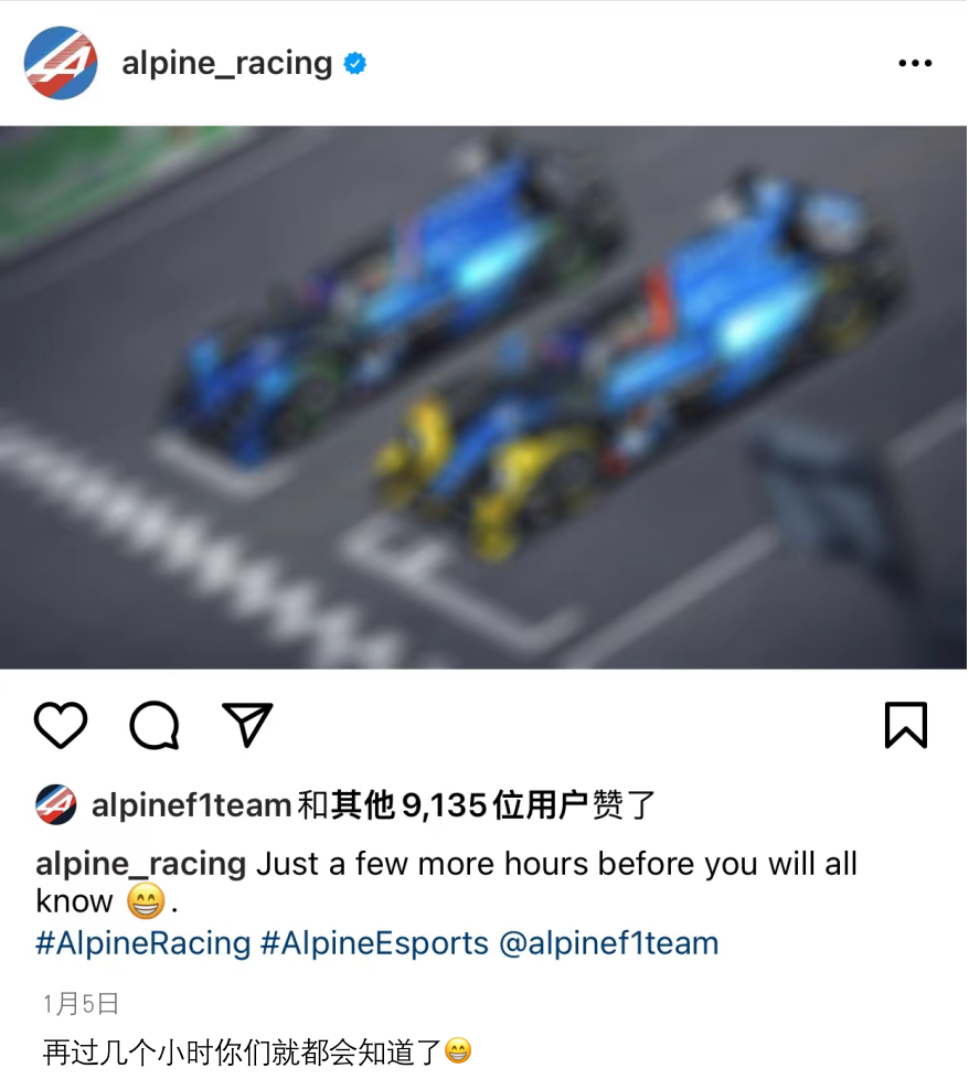 Alpine车队即将发布新车?Ins发布倒计时预告